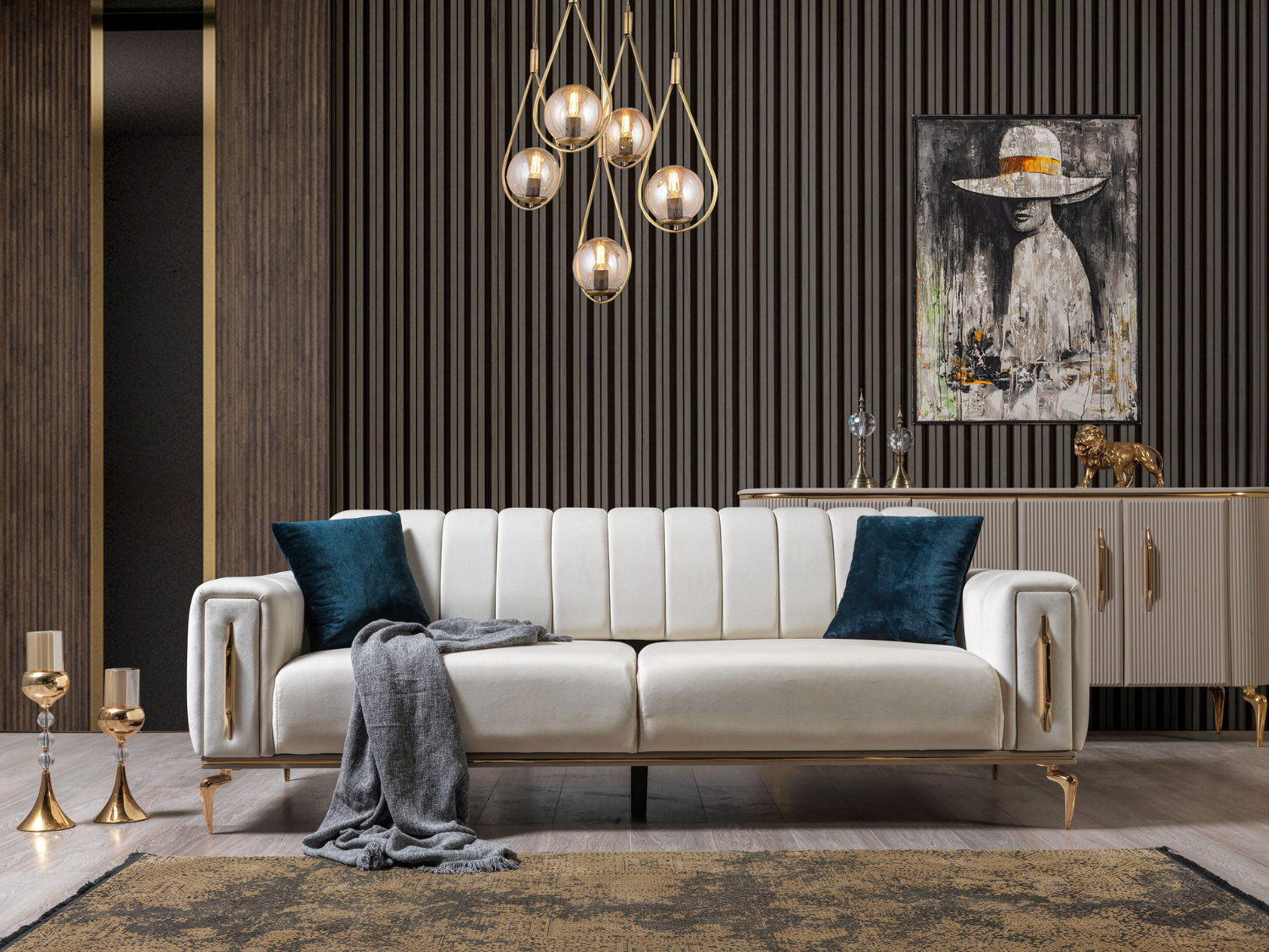The Zümrüt Sofa Set is created for refined living spaces where elegance, comfort, and solid craftsmanship come together in perfect harmony. With its striking presence and carefully considered details, this sofa set elevates the atmosphere of any interior.